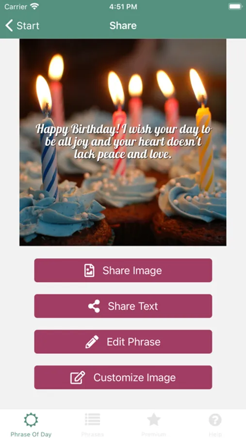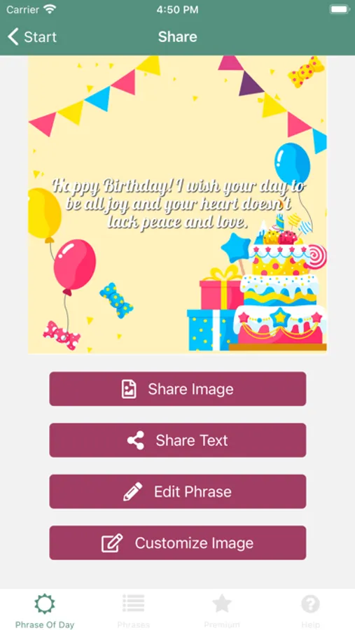 Have you ever thought about drawing attention and making the birthday boy's day cooler? With the Phrases for Birthdays app, you can create an image with a beautiful message in just a few taps to send to your friends!