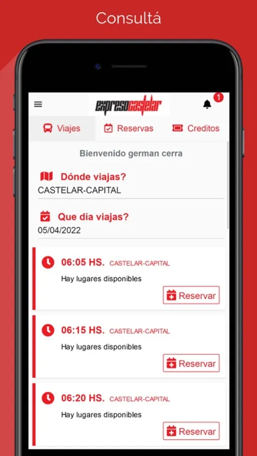 La app de Expreso Castelar te permite visualizar y reservar tus viajes en muy pocos pasos.
