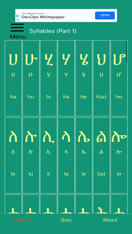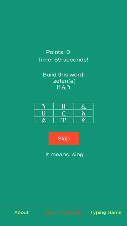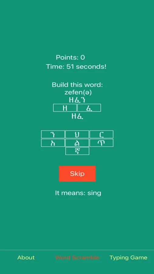 The syllable bases are split into two lists to make quizzing yourself on them a little more manageable. There is also a word scramble game and a typing game to help you learn to read common words and put them together.