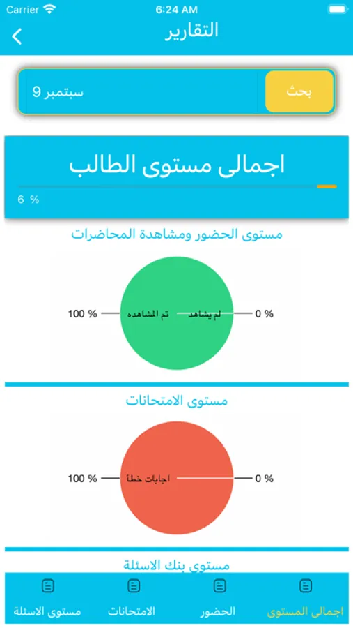 التطبيق يحتوى على اختبارات يتم تحميلها اسبوعيا لمتابعة مستوى الطالب وتنمية مهارات التفكير والابداع