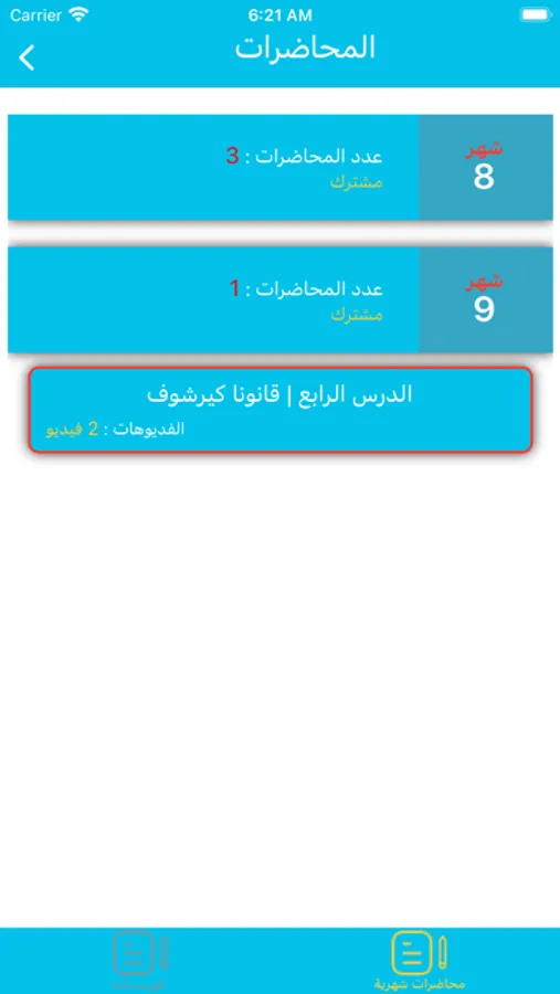 البرنامج يحتوى على تبويب خاص ومنفصل لكل باب فى صورة فيديوهات ولكل فيديو إمتحان وملفات خاصة بالفيديو