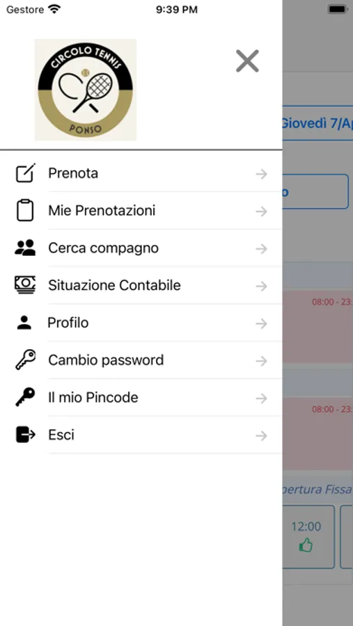 App ufficiale del Circolo Tennis Ponso in provincia di Apdova per l'accesso al sistema EIS di prenotazione online campi sportivi