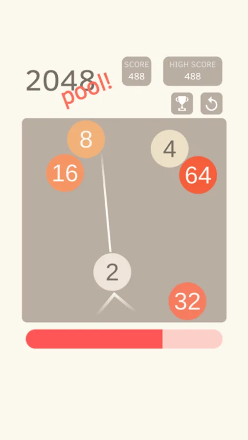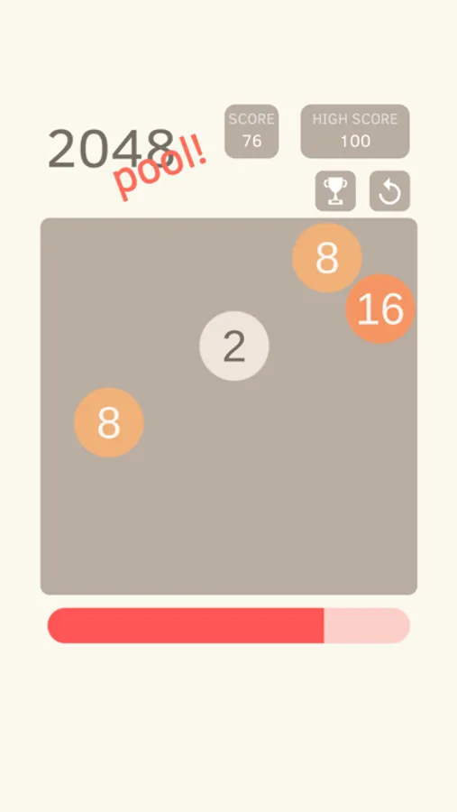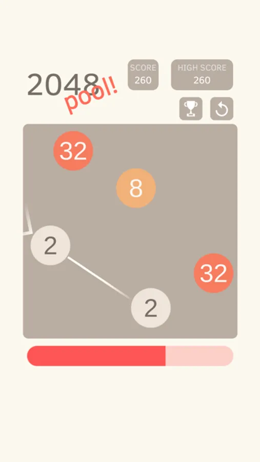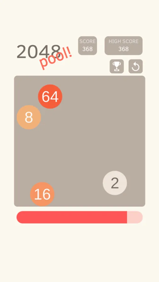 Collide two numbers of the same value so they merge into one. Your goal is to reach as high of a score as possible. Each hit takes some of your energy, however, colliding the balls replenishes the energy. Performing combos (merging more than two balls in a single hit) replenishes even more power for continued gameplay!