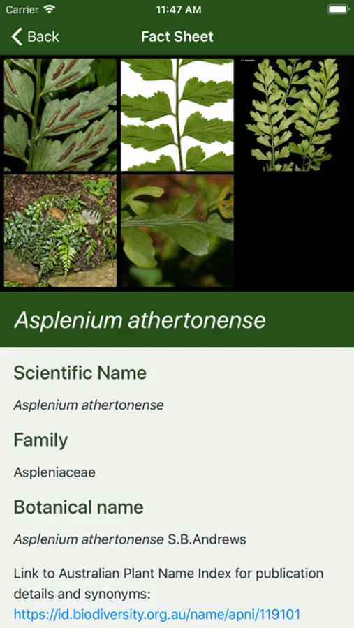 Australian Tropical Ferns and Lycophytes was developed at the Australian Tropical Herbarium by personnel from CSIRO, James Cook University and the Queensland Herbarium (Queensland Department of Environment and Science). In addition to the authors, the character set was developed and revised with input from John Connors, Peter Bostock and Jim Croft. We thank Andrew Franks, Bruce Gray, Robert Jago, David Jones, Garry Sankowsky and Nada Sankowsky for supplying photographs. The project was supported in part by the Australian Biological Resources Study (ABRS).
