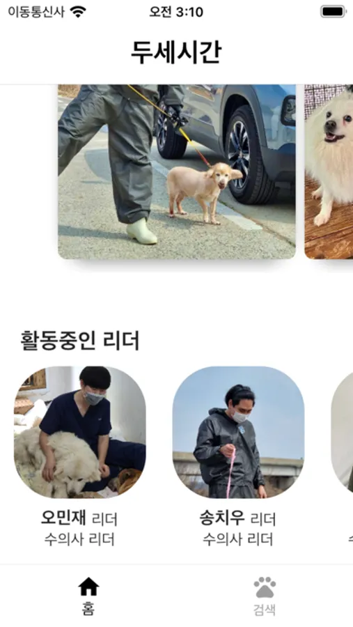 - 유기견봉사를 하다가 이 아이의 이름이 궁금하다? 바로 두세시간 app을 켜서 확인해보아요