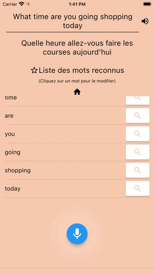 AI Dictionnaire Anglais reconnaîtra à la fois le discours français et anglais et l'affichera à l'écran.