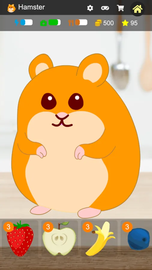 Have fun looking at your Hamster, giving food to keep it healthy and full of energy.