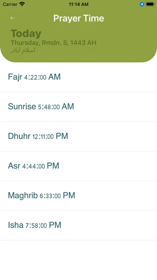 iv. Worldwide Prayer Times clock.