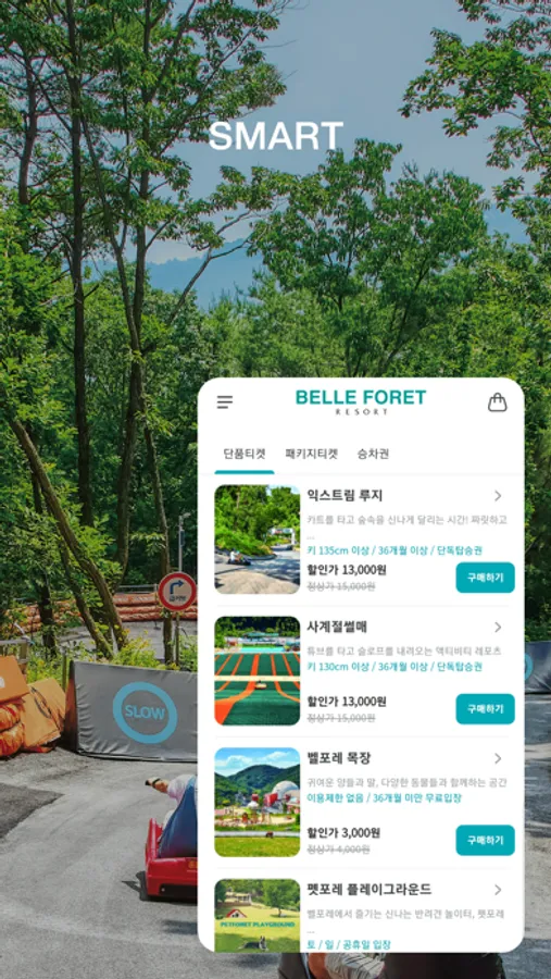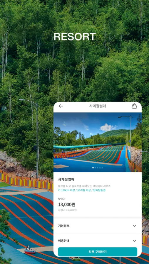 5. 액티비티 : 벨포레에서 즐길 수 있는 액티비티 시설안내 및 티켓 구매 제공.(앱 이용 시 할인 혜택 제공)