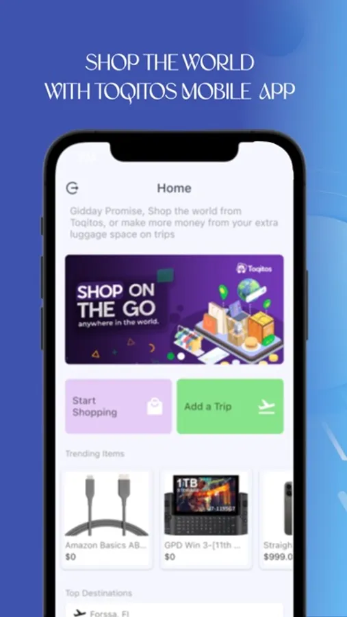 With the Toqitos app, you shop items that you need from around the world