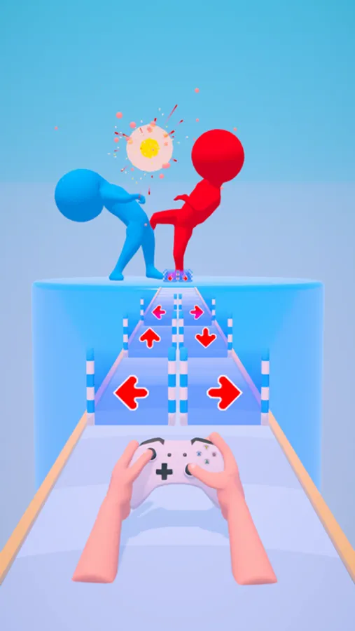Watch out the combo info screen when the game is about to start. Learn your combos and execute them by running through the gates. If you make the combo clearly, watch out the defeat of your enemy.