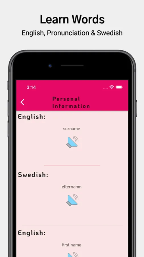 • In every lesson, you can listen to the Swedish word pronunciation as well as see Swedish word in english language.