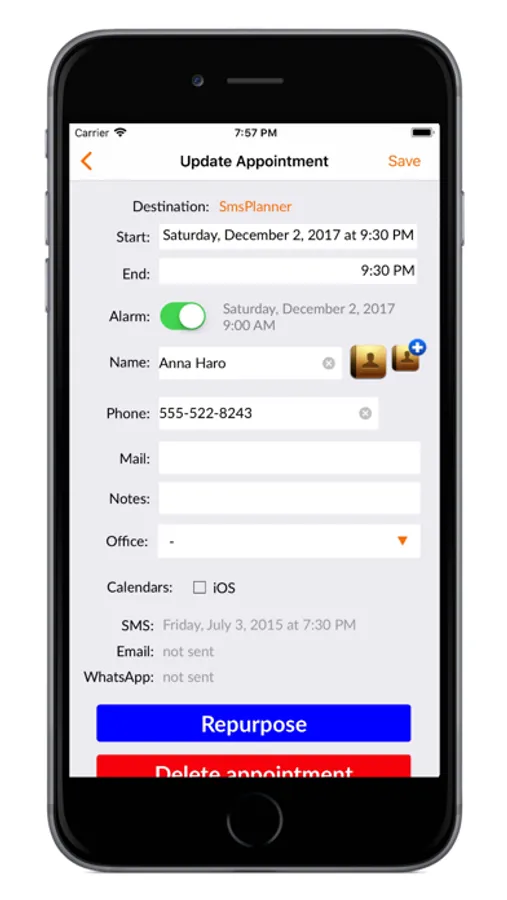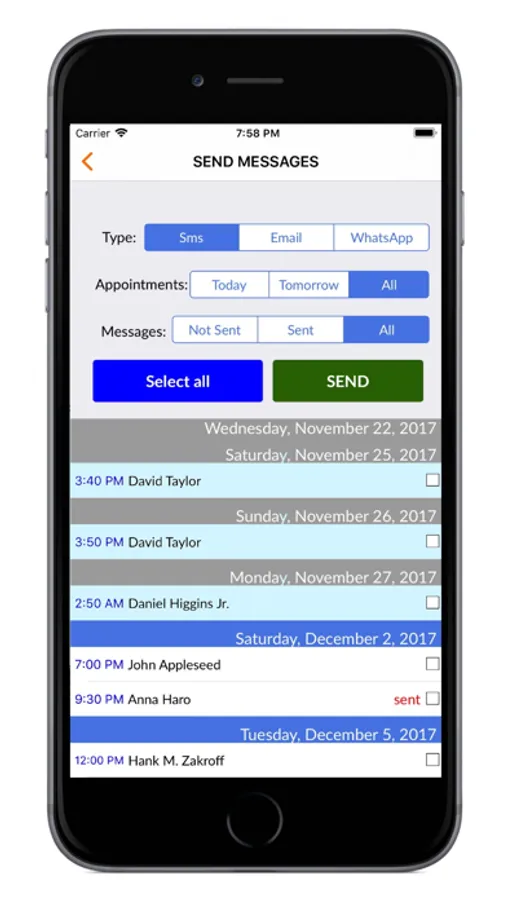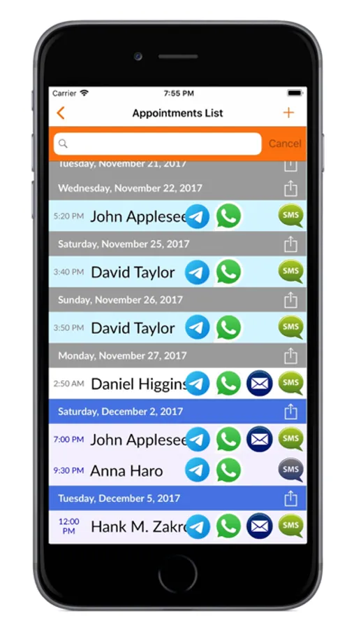 With SmsPlanner you can schedule appointments and deadlines of your customers and then send your personalized SMS, email, WhatsApp, and Telegram to remind individual appointments.