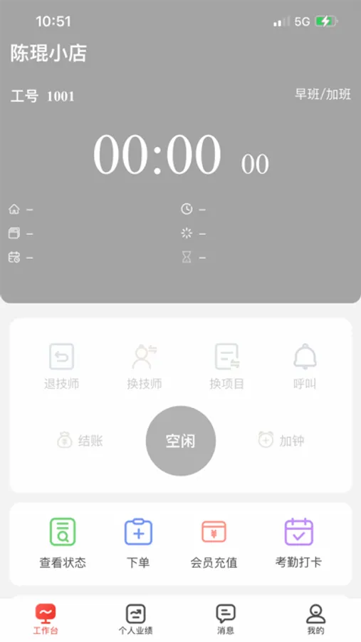 这是一款足浴按摩行业员工们使用查看自己业绩详情、上下钟操作、考勤的软件.
