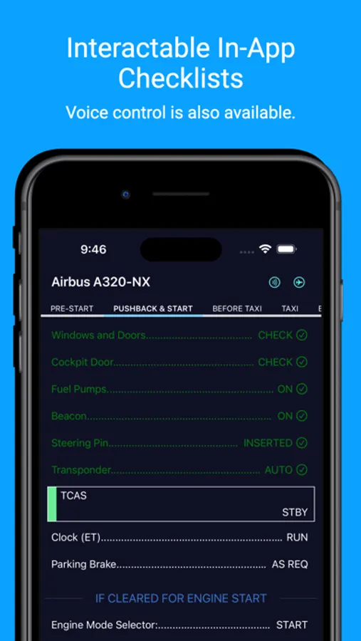 In SimFly Pad, you can quickly find a sophisticated flight checklist to help you complete each stage of your flight with precision.