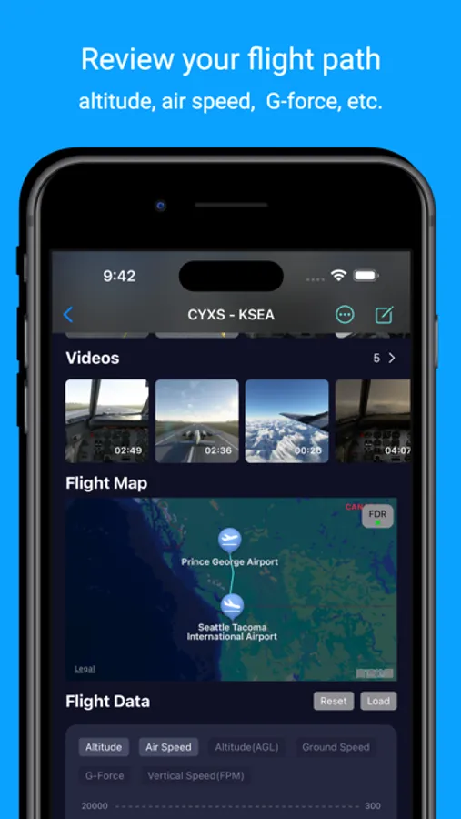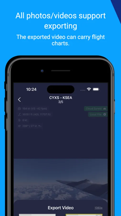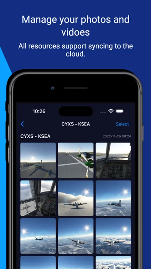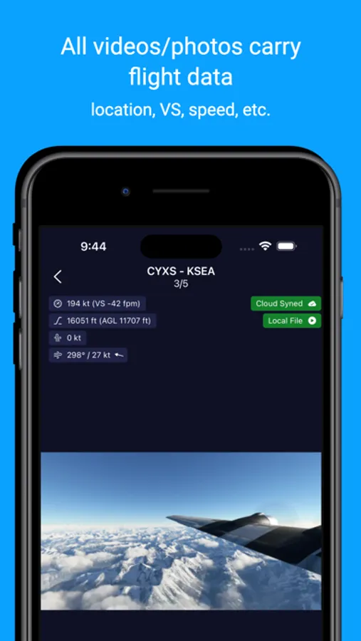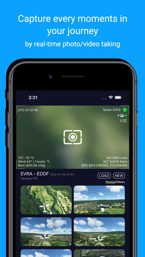 SimFly Pad is also the first App that comes with a built-in "Camera" allowing you to capture and record every moment of your flight through your phone. All photos and videos are supported for syncing to the cloud for permanent storage.