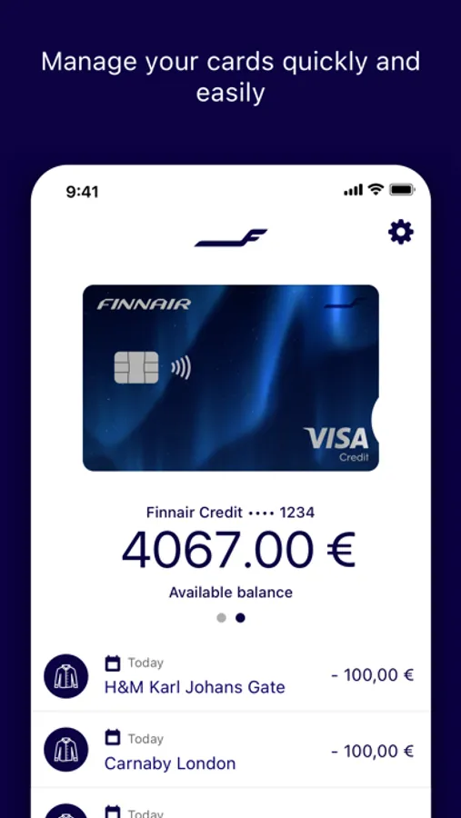 Activate Finnair Visa Credit, verify online payments securely and manage your credit card. You can add your card to Apple Pay and see your credit invoices.
