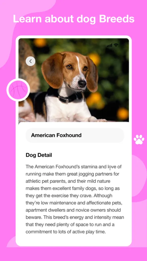 - Breed identification, scan pictures of dogs from your gallery.