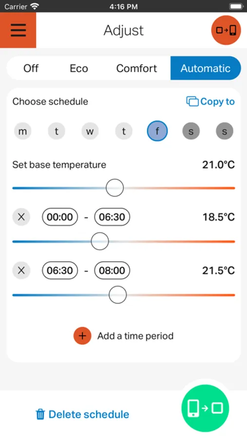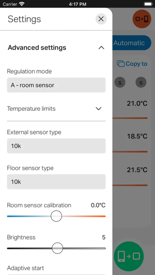 The thermostats can be easily programmed using your phone’s NFC (Near Field Communication) chip. Within the app, you can change the regulation mode, temperature limits, sensor types, calibration values and much more. Weekly schedules can also be easily programmed through the application.