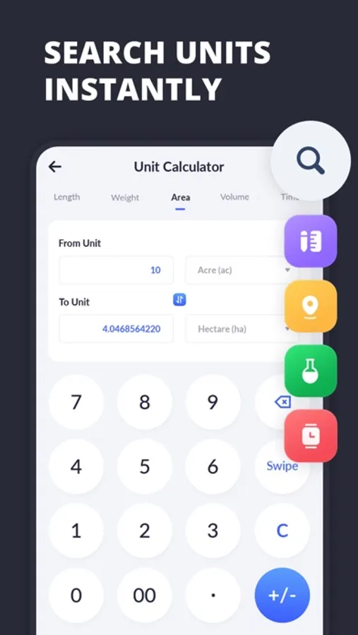 Simple, smart and elegant tool for easy conversion of length, area, weight, temperature, currency, time, volume, speed, distance and much more