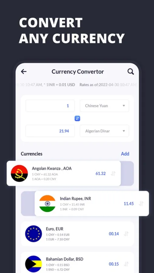 Real-time live currency converter and calculator for converting a value from one currency to another