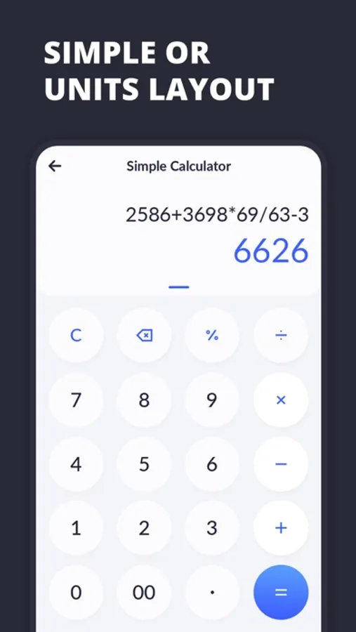 Best Simple Calculator supports the basic arithmetic operation such as addition, subtraction, multiplication, and division
