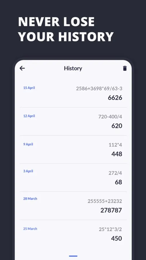 Want to see previous calculations? History display provides you functionality by which you can watch previous calculations