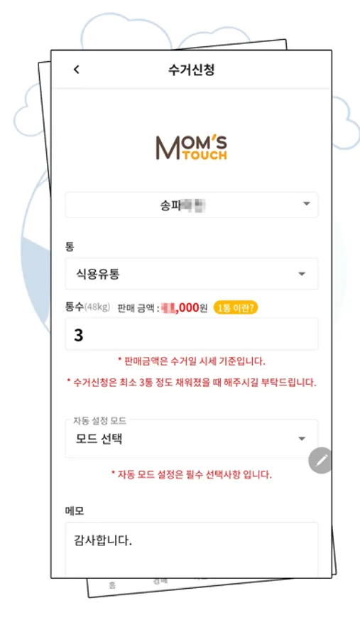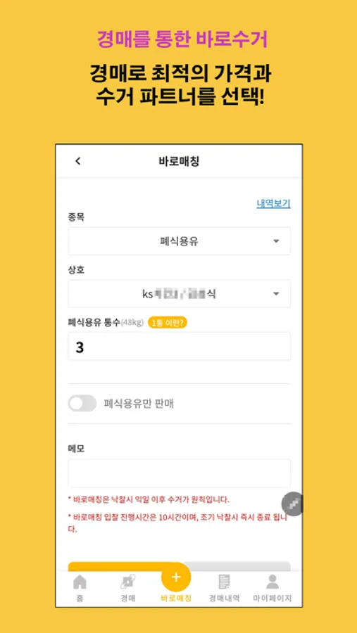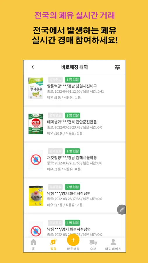 수거신청 / 매칭 / 식용유 거래를 원스톱으로