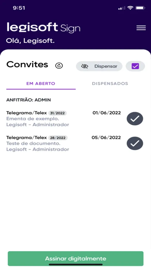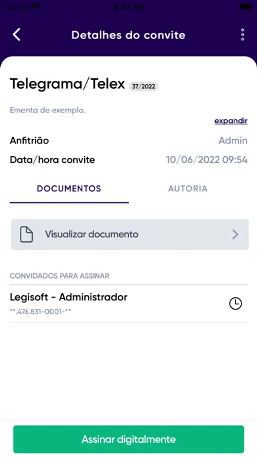 Através do aplicativo é possível acompanhar todas as pendências de documentos a serem assinados digitalmente, ao mesmo tempo que é possível a análise do teor destes documentos na íntegra, bem como, os autores, quem já assinou, ementa e outras informações relevantes para serem analisadas em detalhes antes da assinatura.