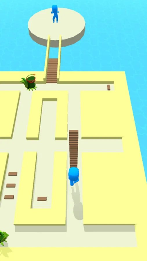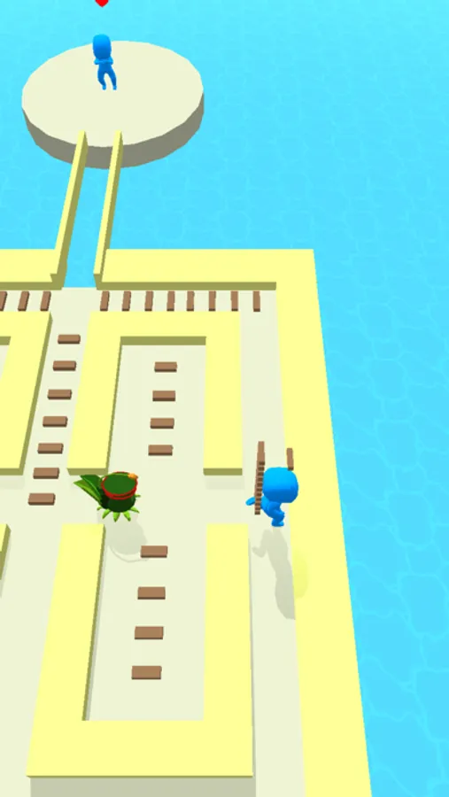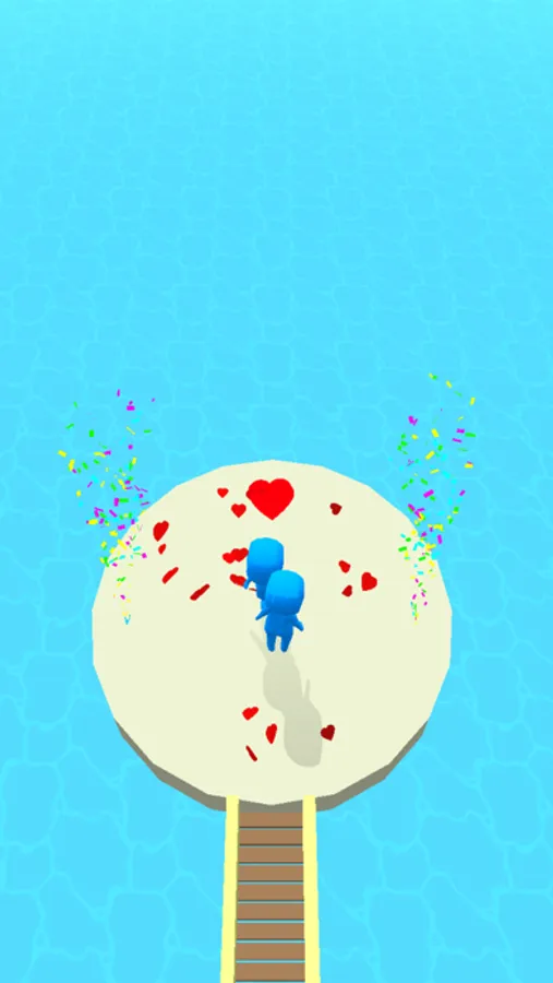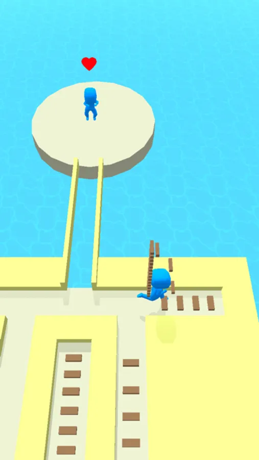 Run in to the maze, collect planks to build a bridge and reach your couple.