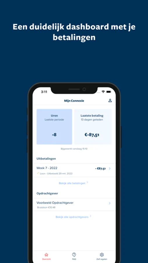 In een oogopslag zie je hoeveel uur je hebt gewerkt bij je opdrachtgever en hoeveel salaris je krijgt