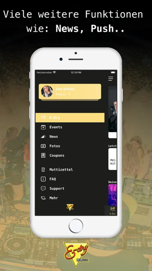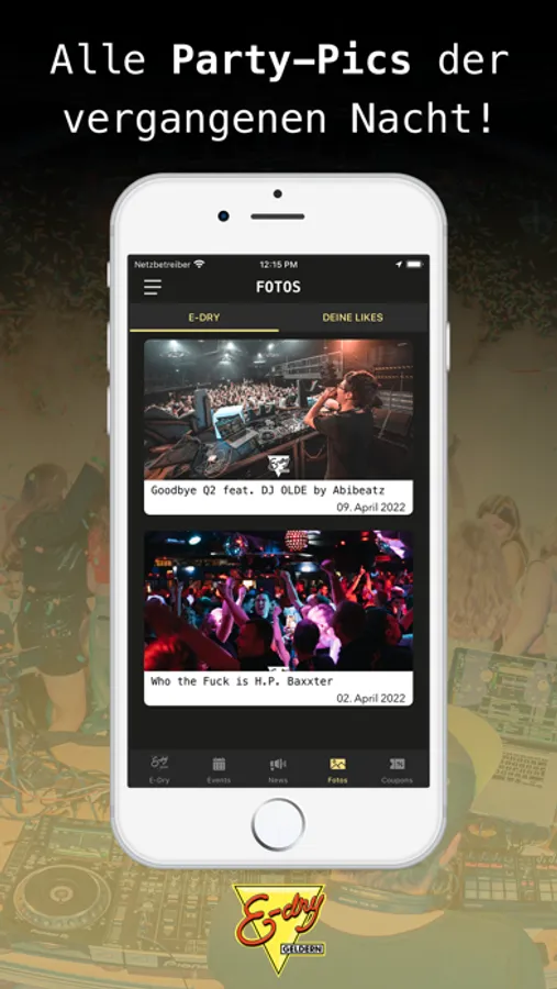 Du erfährst als erster, wann die nächste Party steigt und profitierst dabei noch von fetten Aktionen. Zum Event sparst du mit unseren Gutscheinen bares Geld. Damit du dich am Tag danach auch an den geilen Abend erinnern kannst, stellen wir alle Party-Pics in der App bereit.