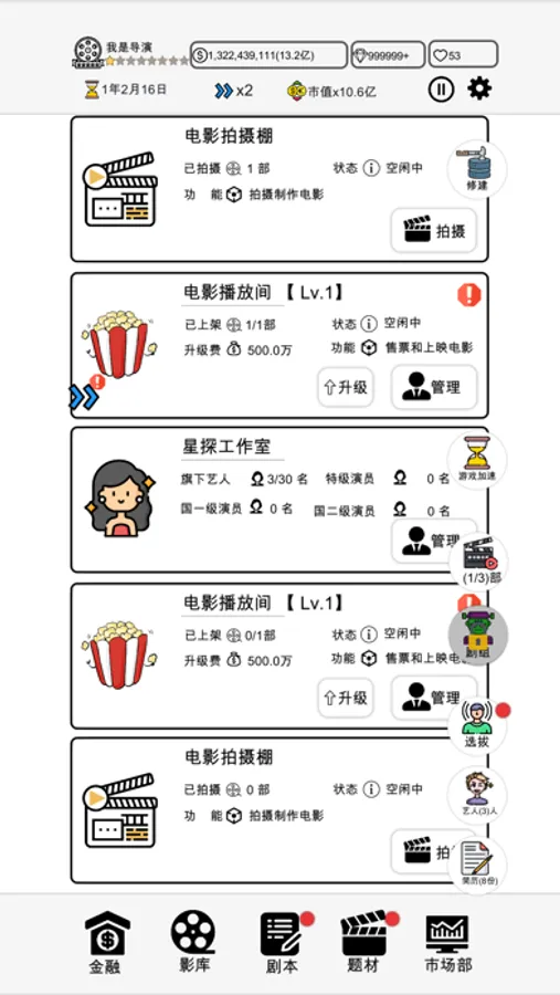 -文字经营的玩法非常的出色,各种信息很直观的展示给你,让你更好的进行导演