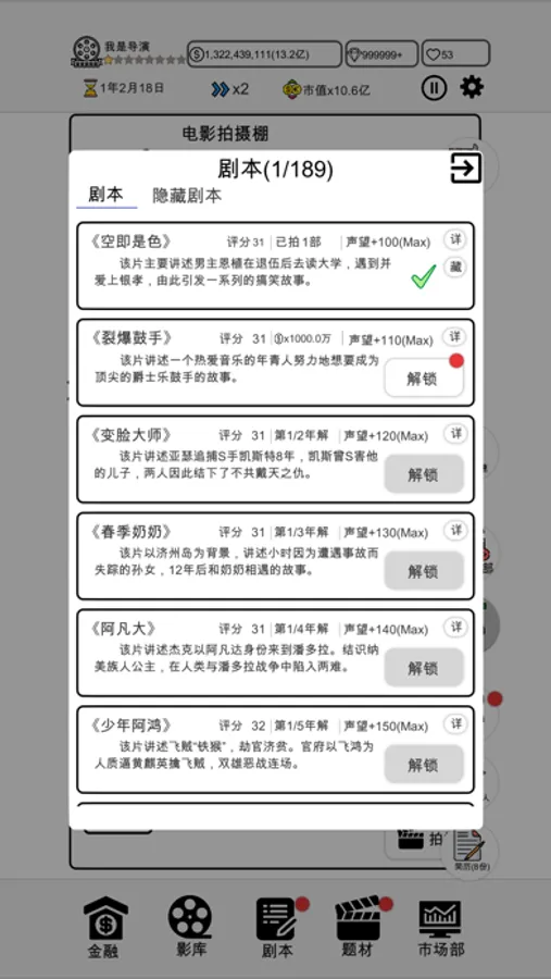 c、票房收入很重要,您可以获得各种奖励,可以用自己的能力征服所有评委。