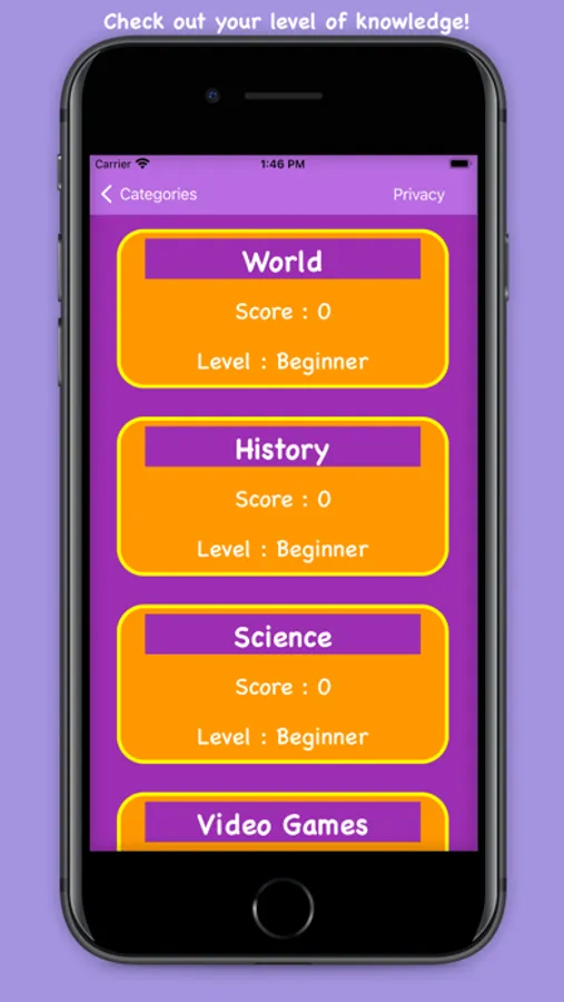 The quiz questions on categories Music, Video Games and Film are designed to give you a fun and relaxing experience.