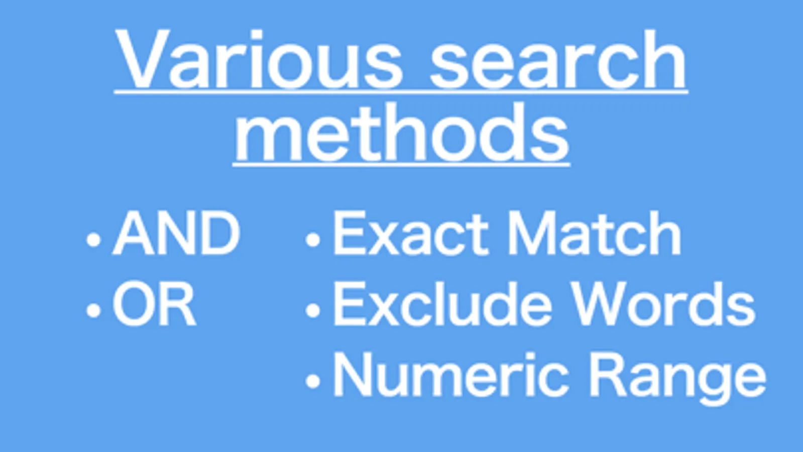 ・Exclusion search, excluding certain keywords from results
