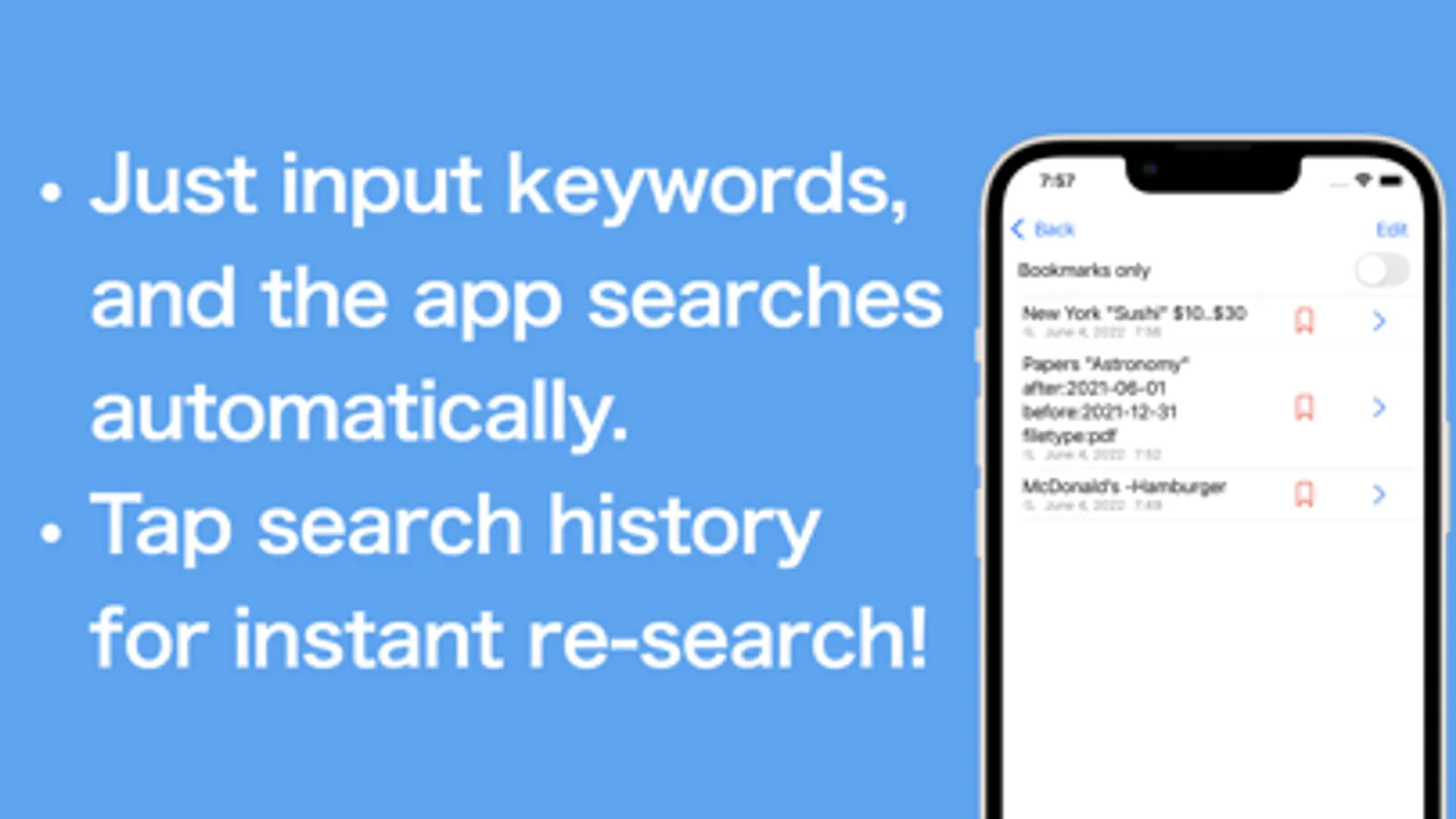 This app allows you to perform advanced web searches with just inputting keywords.