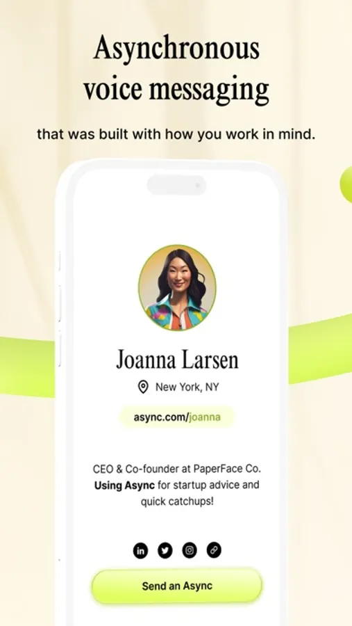 - Send people your Personal URL for them to respond to, or send them an Async voice message.