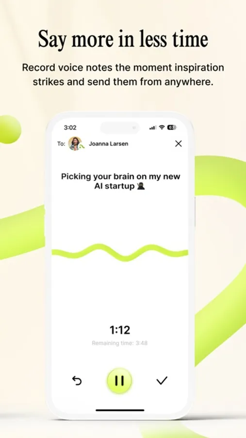 Gone are the days of non-stop meetings. Replace quick calls and unnecessary back-and-forths with asynchronous voice messaging that was built with how you work in mind. Read the transcript. Reply any time. Send on any platform.