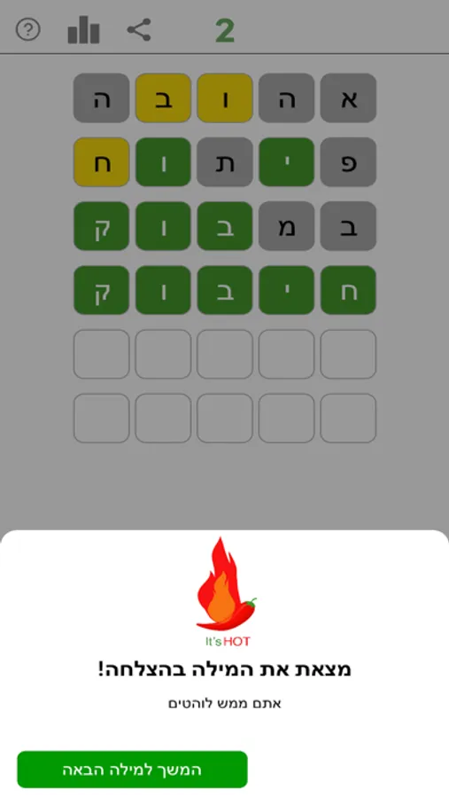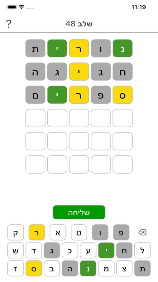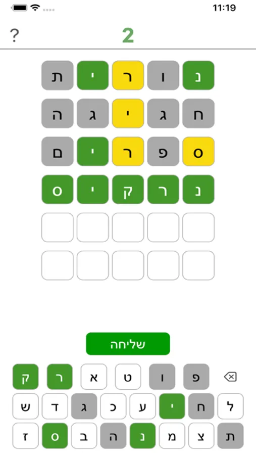 הצבע של כל משבצת ישתנה ויראה לכם כמה הניחוש שלכם קרוב למילה הנכונה