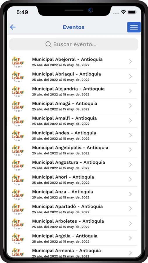 - Podrás seleccionar el evento de tu preferencia según las fases de competencia del programa.