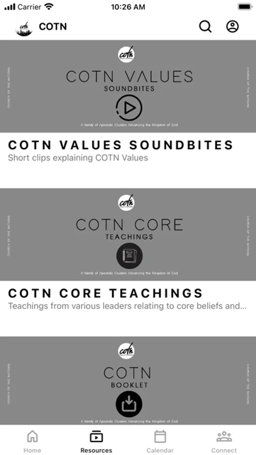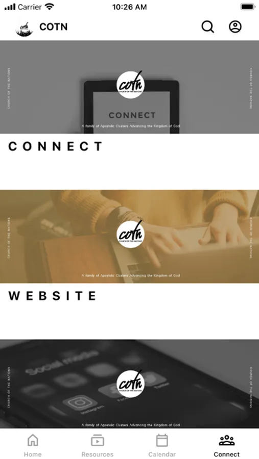 This app will help you stay connected with Church of the Nations (COTN). With this app you can: watch or listen to past messages or conferences; stay up to date with push notifications; share your favorite messages or news via Twitter, Facebook, or email.