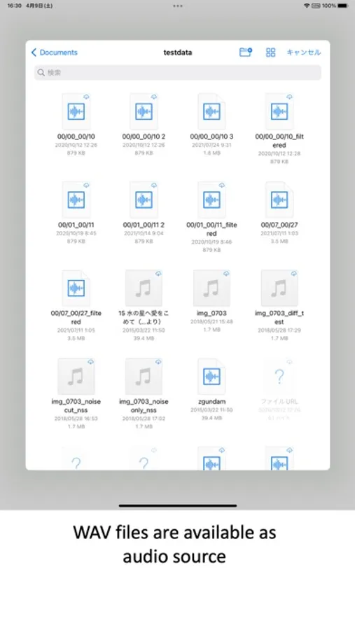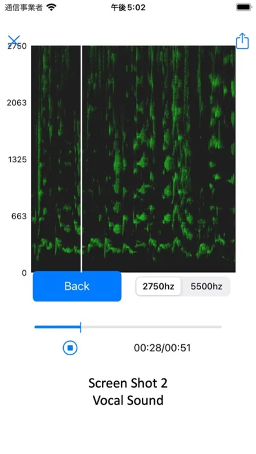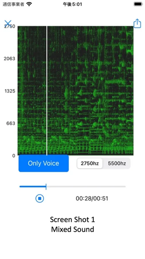 We have developed an application that extracts vocal sound from mixed sound by letting AI learn the spectrum of vocal sound. Screen shot 1 shows the mixed sound spectrum, and screen shot 2 shows the vocal sound spectrum extracted from the mixed sound by this application. There are still issues to be solved in order to improve sound quality and processing speed, so we plan to continue development in the future.