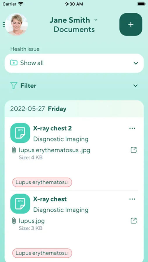 Keep a full record of your medical history by uploading important documents such as diagnoses, prescriptions, lab results, x-rays, and more.