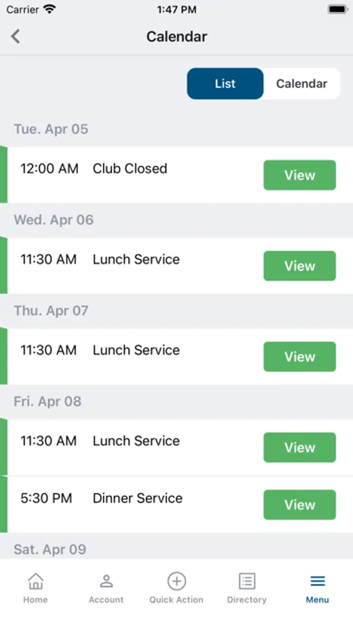 - View calendar of events