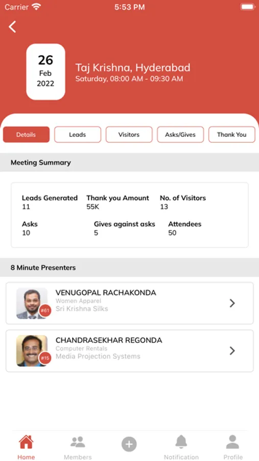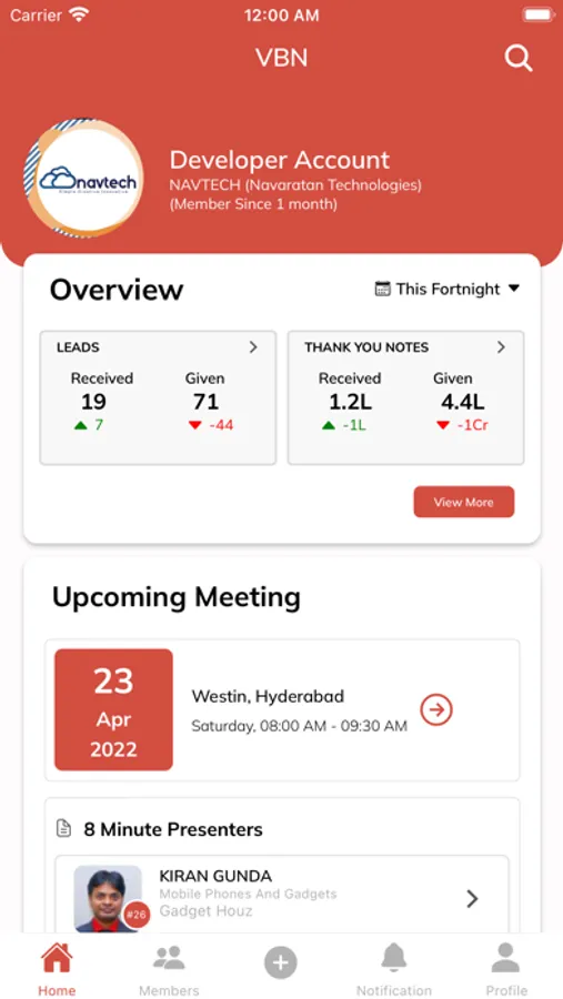 A business network platform catering for small businesses to give and receive leads. Users shall create leads for other businesses in the network and also receive leads for their business in the network. Users can see stats of the in-person fortnight meetings held by their network.