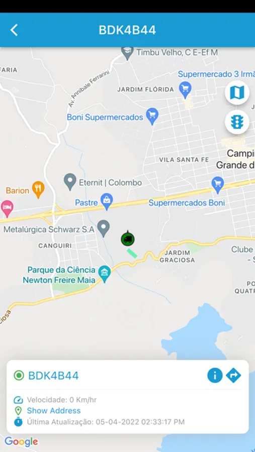 Nosso aplicativo permite o monitoramento de veículos associados a uma determinada conta em nossa plataforma web.