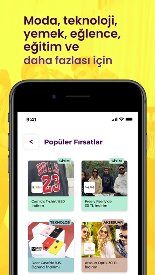 Yeni marka, fırsat, öğrenci indirim kuponlarından haberdar olmak için takipte kalmayı unutma. Arkadaşlarını davet et senin sayende daha çok öğrenci fırsat ve indirimlerden yararlanabilsin.