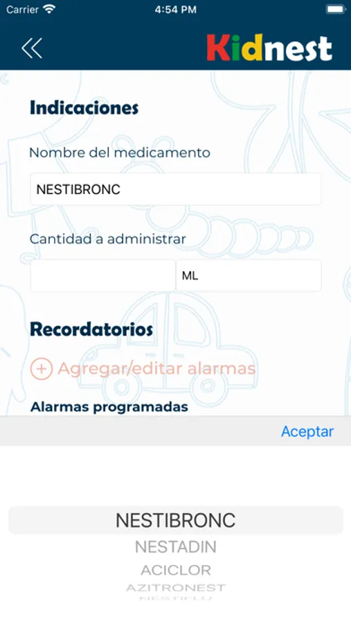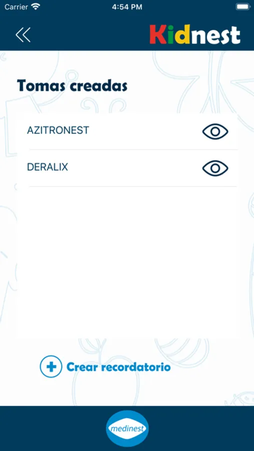 Aplicación propuesta por Pharmanest al servicio del profesional médico y de los padres en beneficio de la salud del niño. Con KIDNEST no se saltean las tomas de medicamentos, evitando el incumplimiento de las dosis indicadas, con KIDNEST el niño estará más dispuesto a seguir las indicaciones del profesional de la salud sin los conocidos berrinches a la hora de tomar el medicamento o asistir a la consulta.