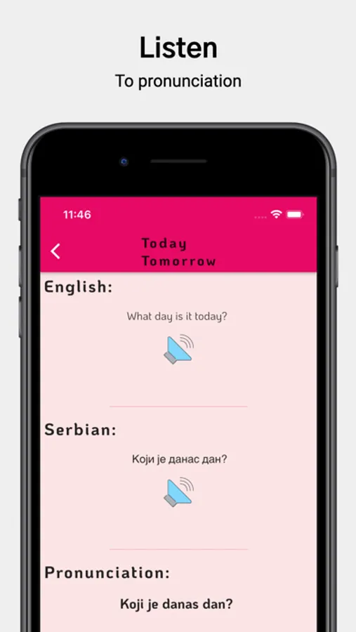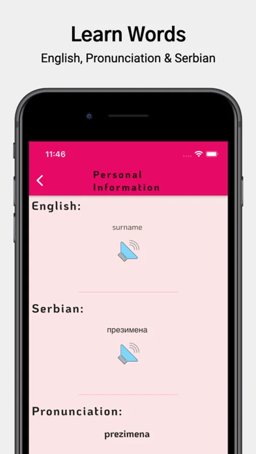 • In every lesson, you can listen to the Serbian word pronunciation as well as see Serbian word in english language.